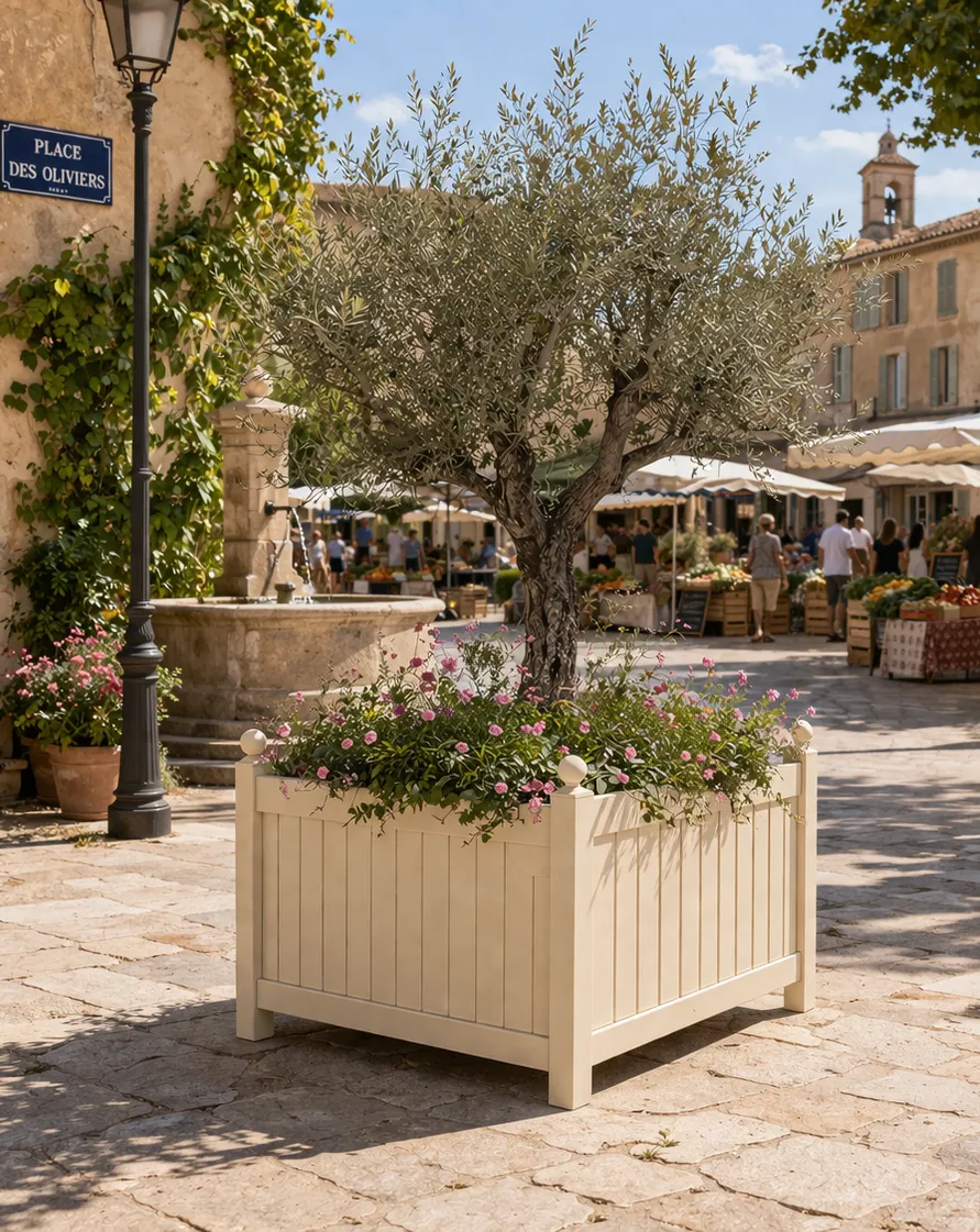 Ursprünglich aus Holz gefertigt, um Zitruspflanzen anzubauen, wird die Orangenkiste heute in Städten häufig als Pflanzkübel verwendet, um verschiedene städtische Räume zu verschönern. Ihr trendiges Design verleiht ihr einen exotischen Charme, der an die Orangenbäume des Südens erinnert.