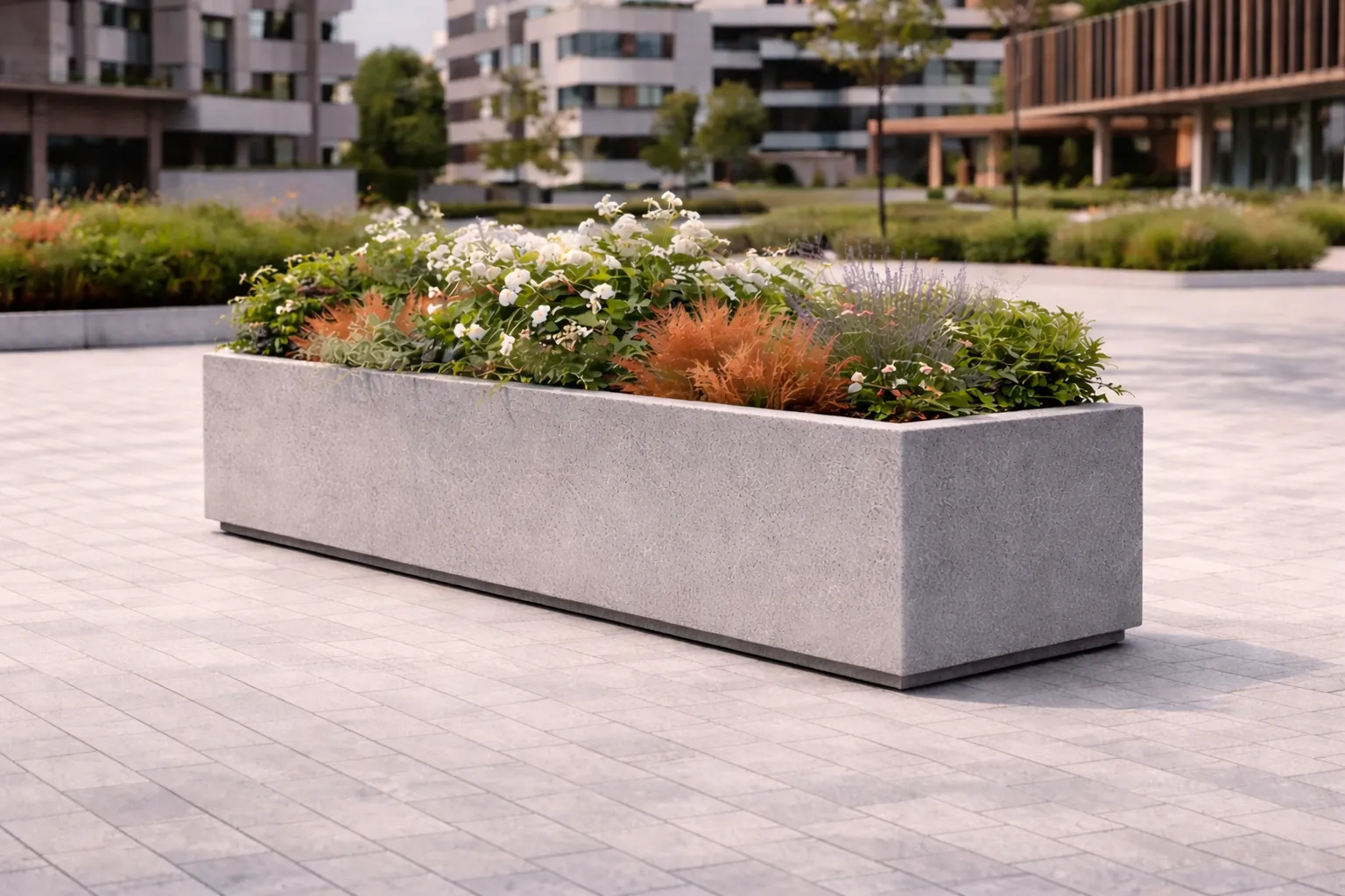 Betonpflanzkübel fügen sich leicht in Stadtzentren und Grünflächen ein und passen sich sowohl rustikalen als auch modernen oder traditionellen Dekoren an.