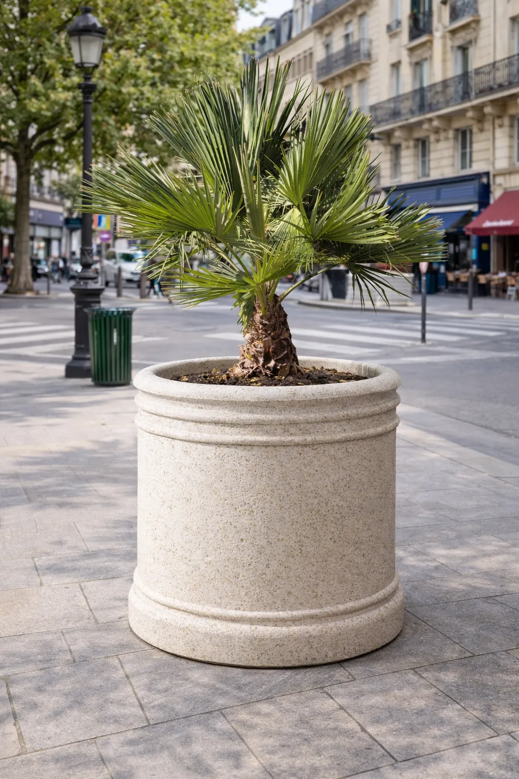 A traditional Chambord planter with its delicate original finish brings a touch of elegance to urban spaces. Its square shape makes it ideal for planting shrubs such as small fir trees and tall plants. The Chambord planter has a timeless design and is perfect for streets, terraces and building façades in public spaces.
