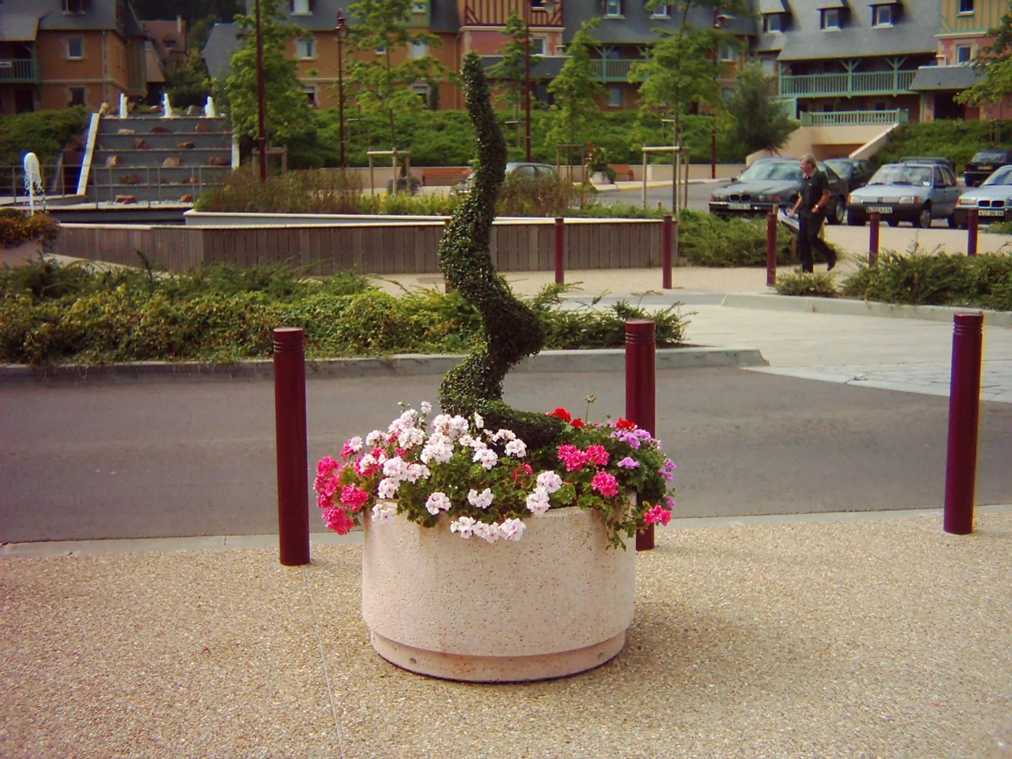 Made from concrete, this outdoor planter is highly resistant to impacts and temperature variations.