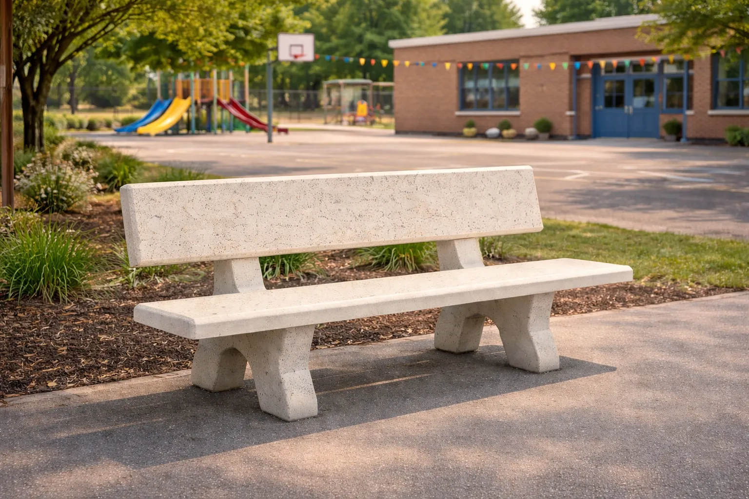 Betonnen bank met gepolijste zitting en rugleuning